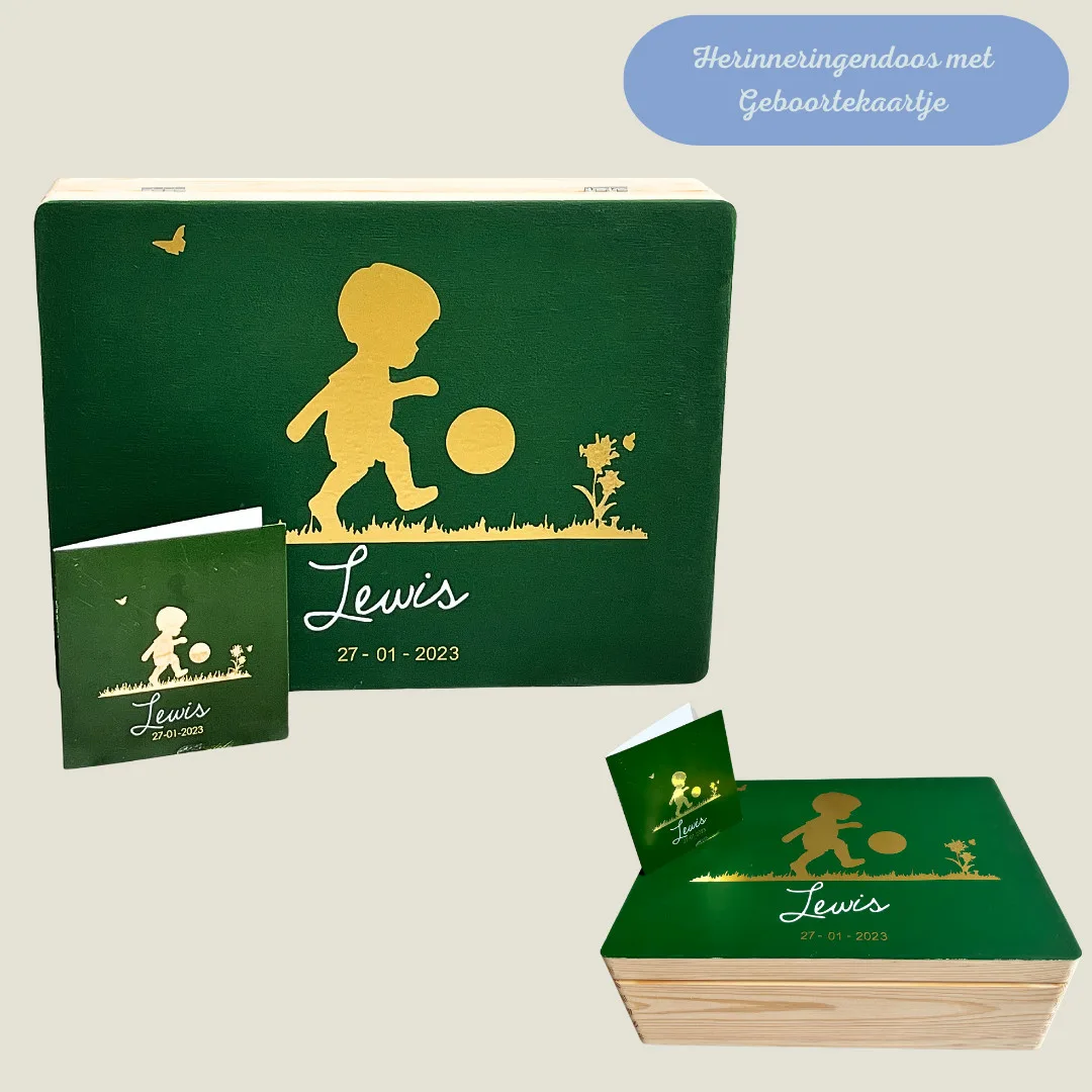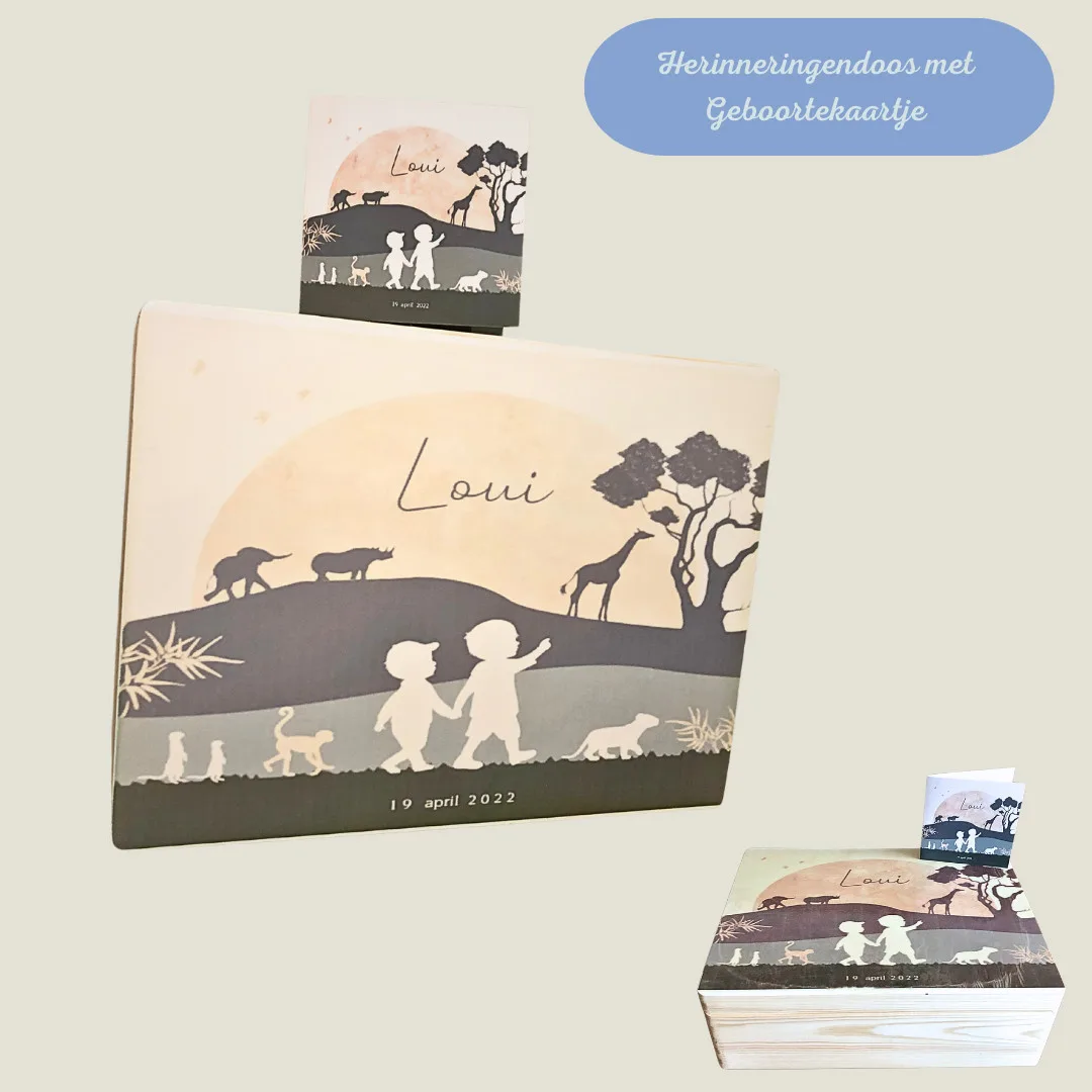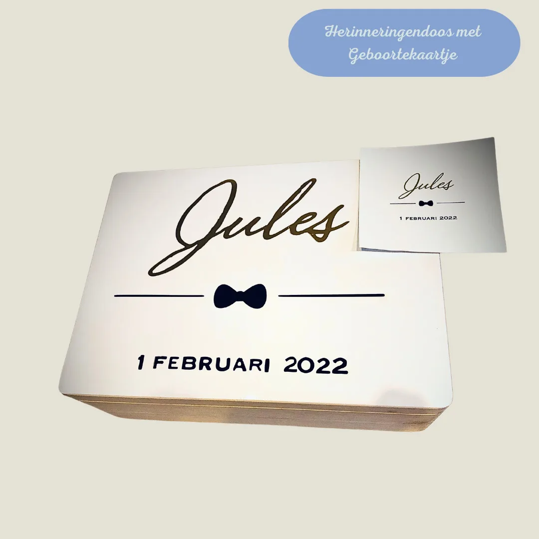 Toekomstige ouders gaan opzoek naar het mooiste geboortekaartje voor hun toekomstig wondertje, dus niets zo leuk dan dit prachtige kaartje te vereeuwigen op de herinneringendoos, waarin al de herinneringen van het kleintje kunnen bewaard worden.